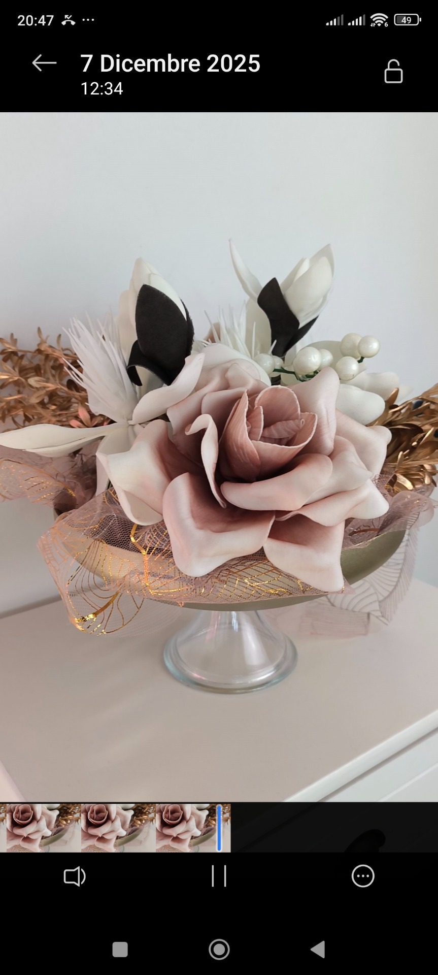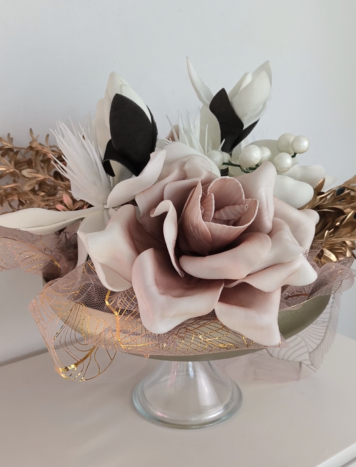 Alzata colori oro con fiori in gomma. Dimensione alzata cm.25