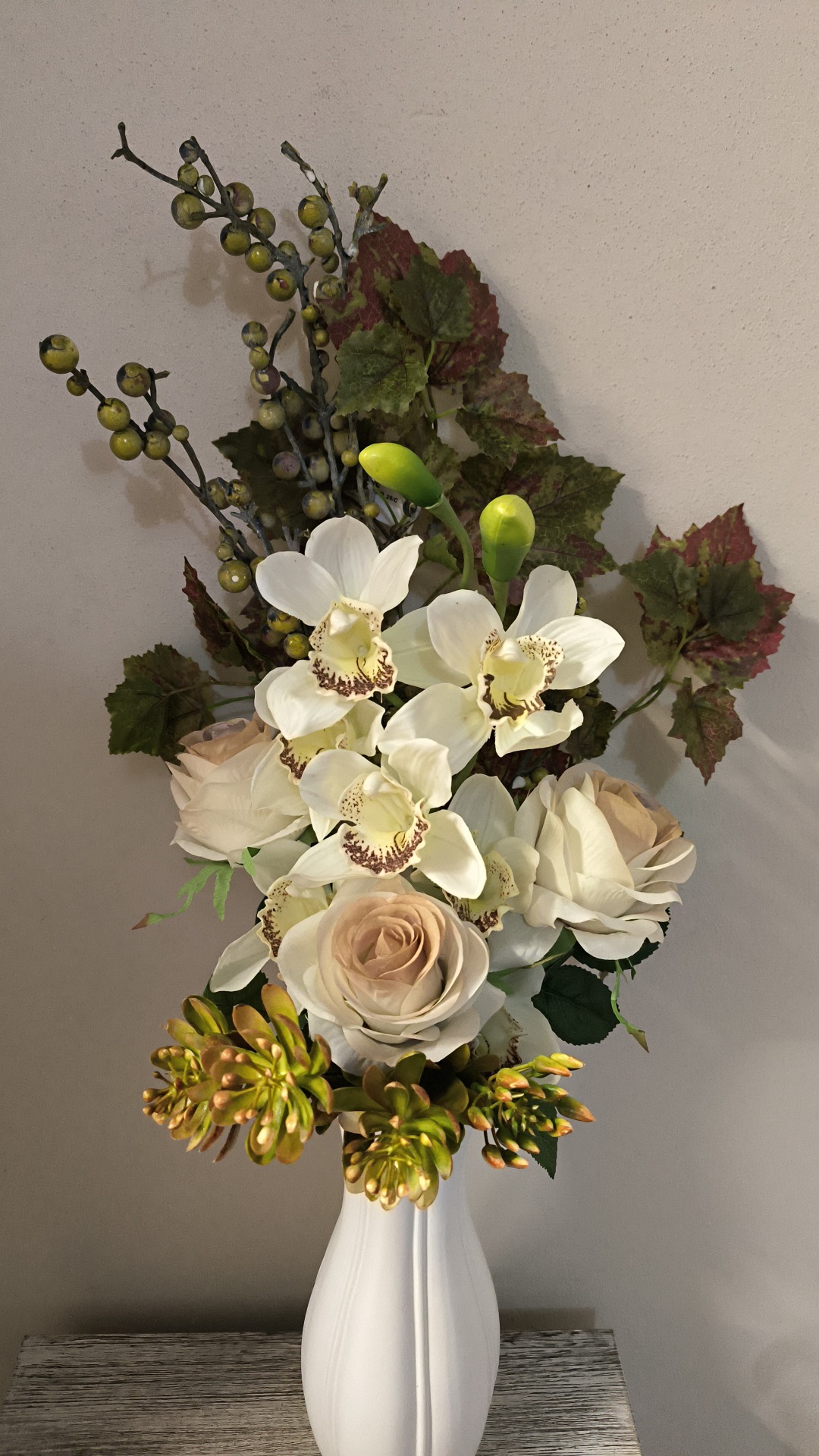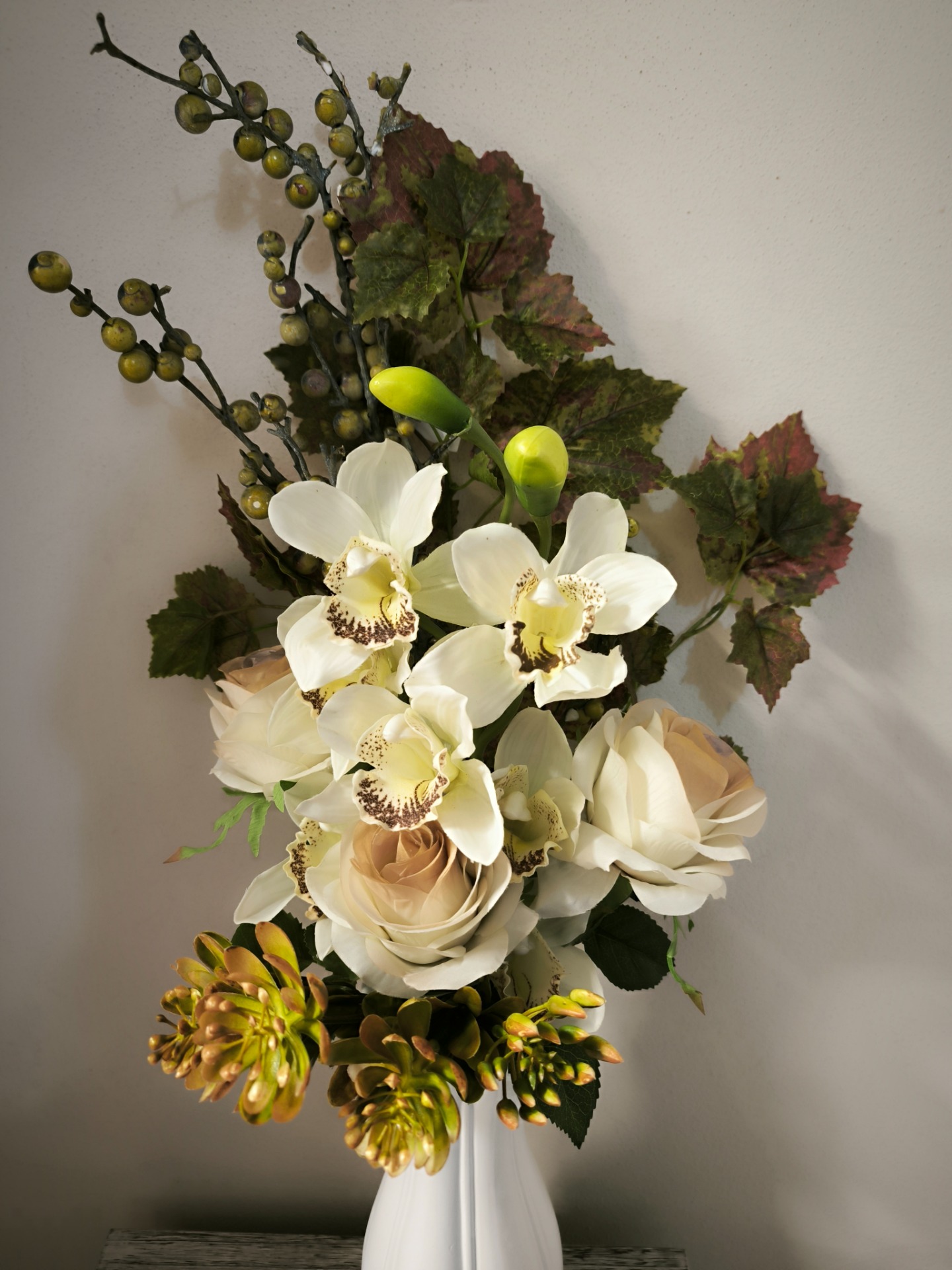 Composizione frontale alta 50 cm con orchidea in lattice