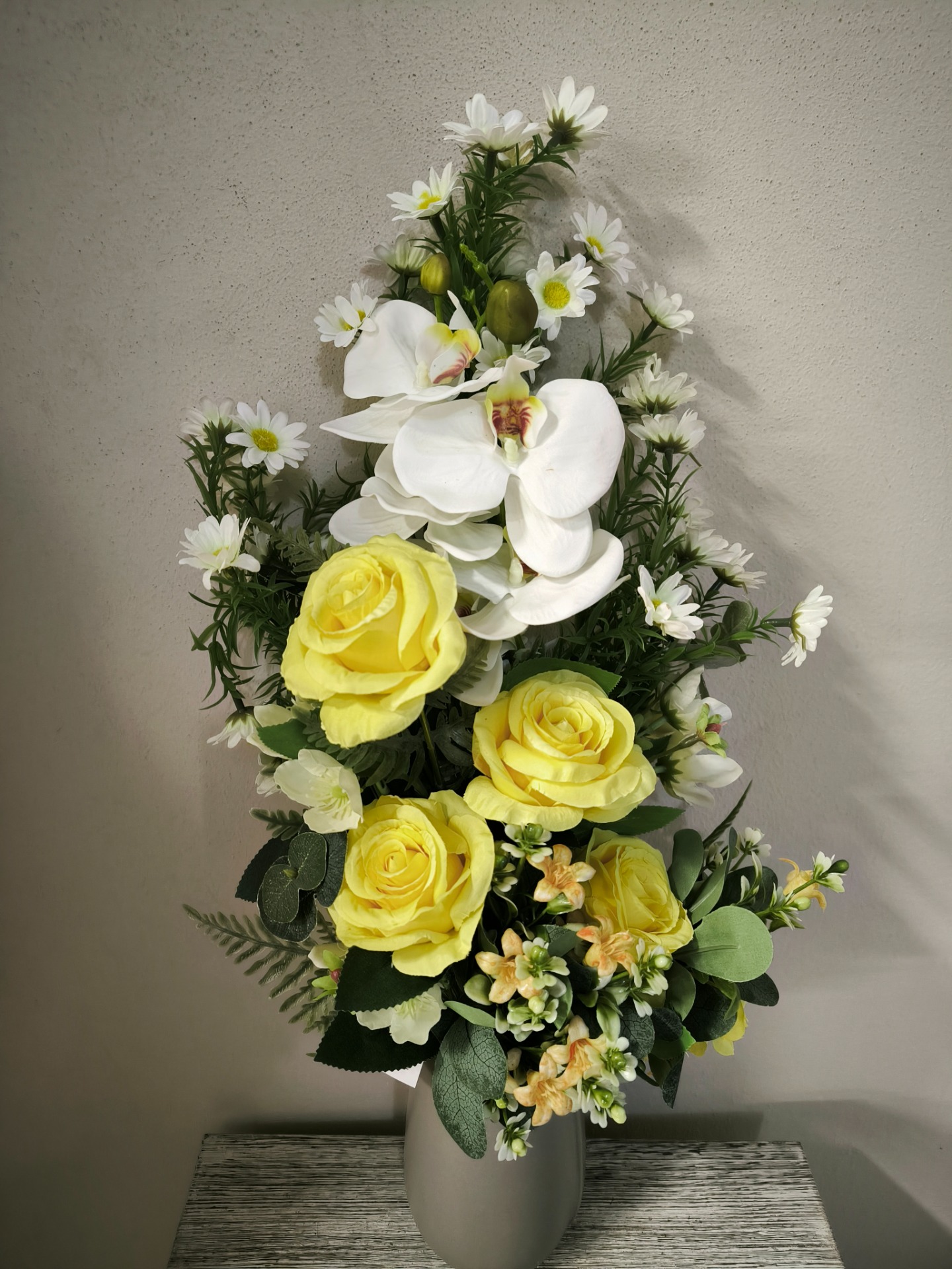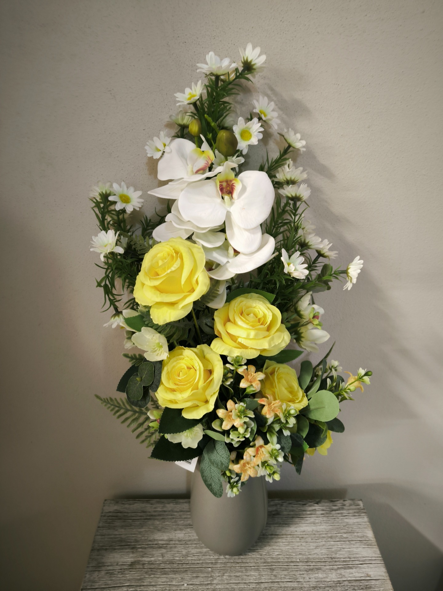 Composizione rose orchidea margherite