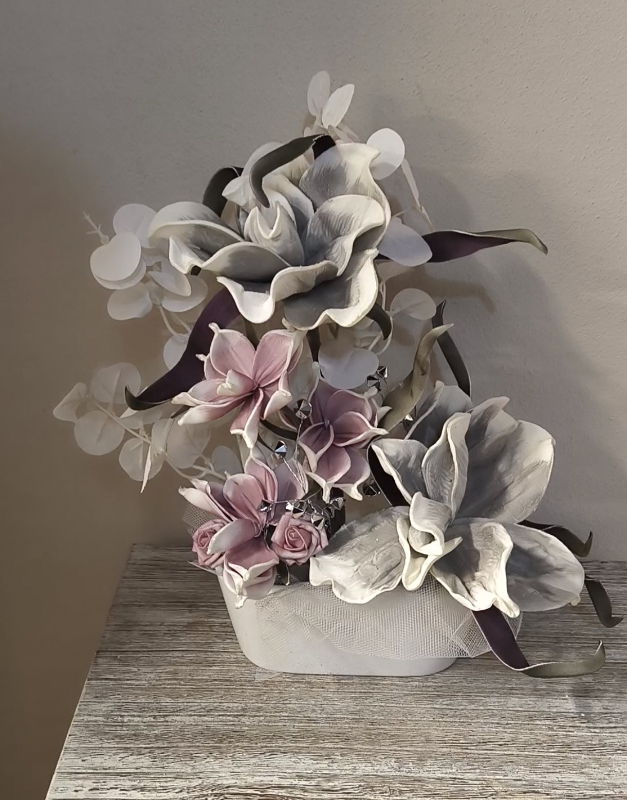 Composizione su base ovale in porcellana cm.20. altezza cm.40