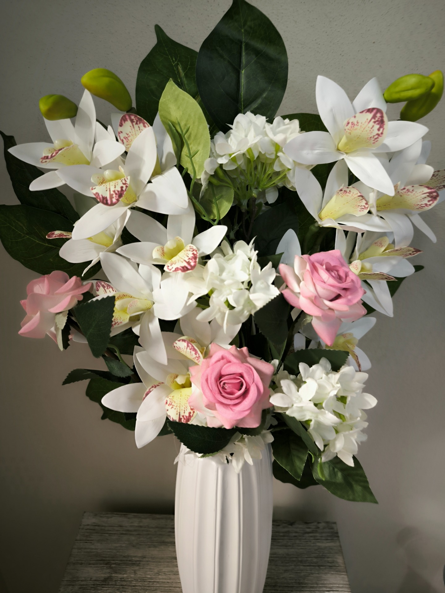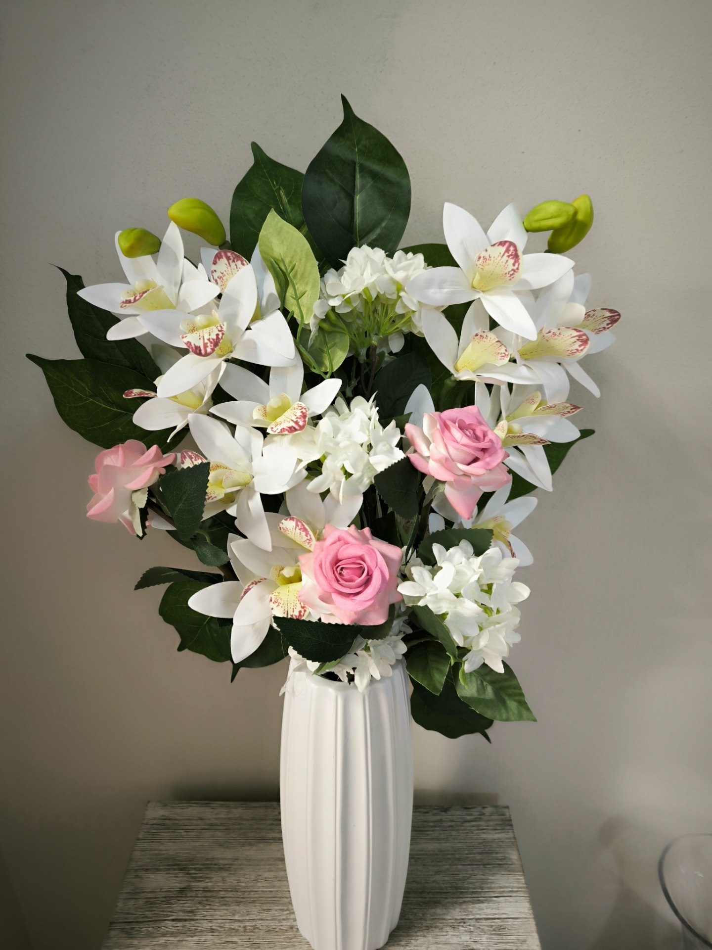 Mazzo frontale altezza cm.60 con orchidee in lattice