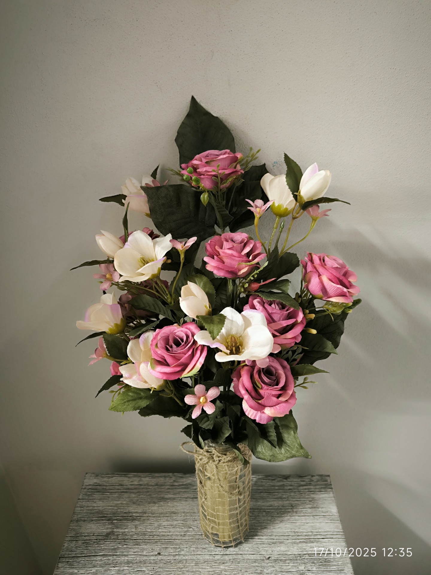 MAZZO FRONTALE MODELLO AUTUNNALE CON ROSE E MAGNOLIE